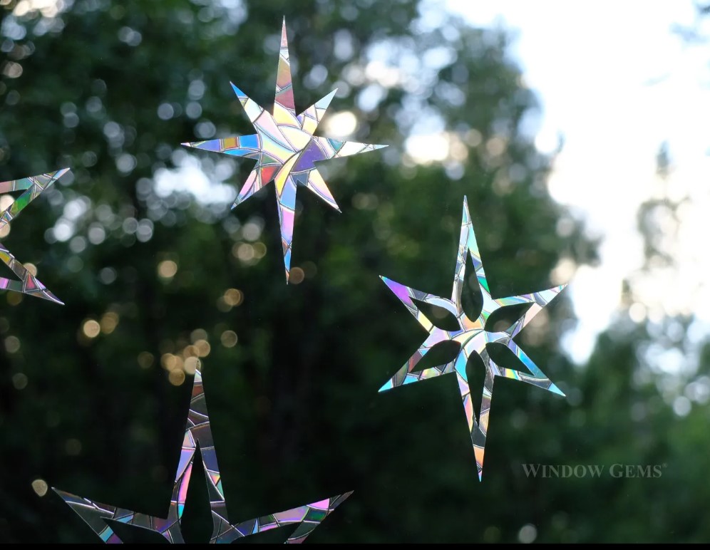 Window gems are designed to go on the outside of the windows to break up this reflection and give birds visual cues that this is a shiny wall. They work beautifully. As birds fly toward a window protected with Gems, the reflections shift and move with their movements while the Gems stay stationary. This warns them that something is wrong and gives them enough time to change direction before collision. Even in the shade without the prismatic effect, they are incredibly effective.
